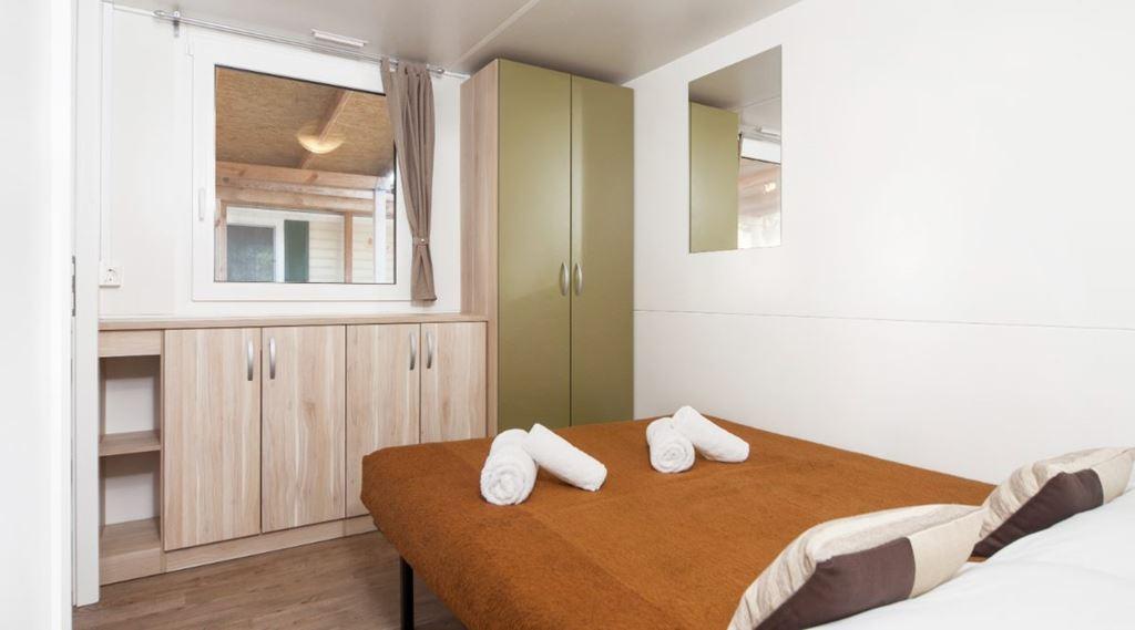 Nabízíme zde ubytování v mobilních chatách: 1/4+2 mobil home Superior: Mobilní chaty se nacházejí 50-100 m od pláže. Pláž je přírodní oblázková, betonová s pozvolným přístupem do moře. Lehátka a slunečníky na pláži jsou k dispozici za poplatek. Na pláži nabídka místních vodních sportů.