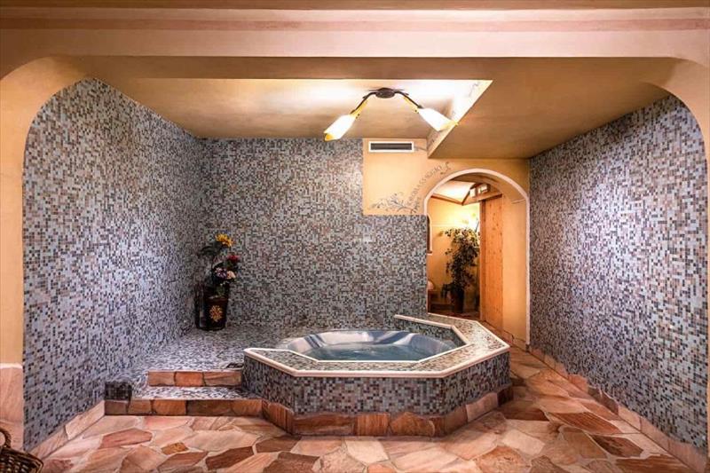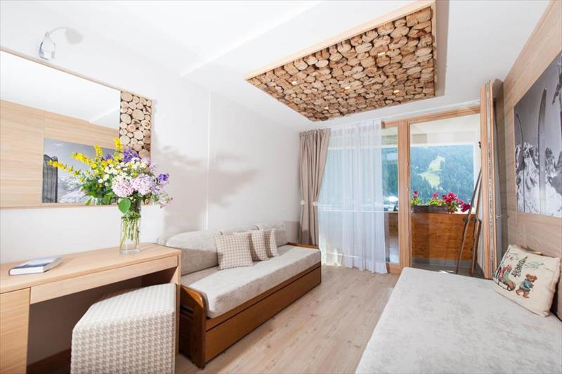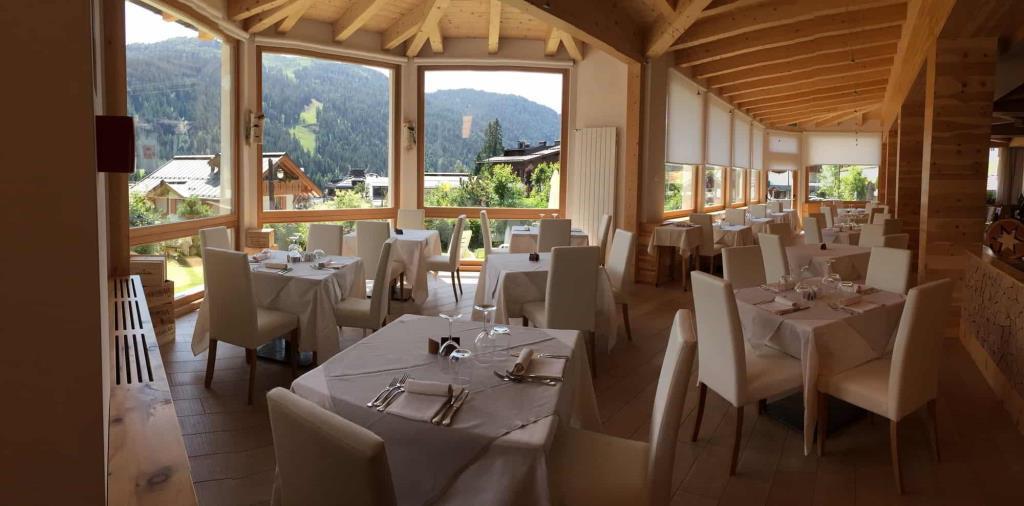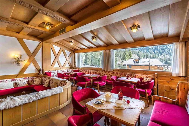 Hotel je vybaven recepcí,bar,jídelna,restaurace,obývací pokoj s TV koutek,herna,lyžárna,Zahrada s panoramatickým výhledem na Brenta Group a parkovací místo (dle dostupnosti).Ve wellness mají hosté volný vstup do finské sauny,Středomořská sauna,Turecká lázeň spolu s hydromasážní vanou a tropickou sprchou.Pohodlné a prostorné pokoje,vybavena koupelnou (se sprchou/WC a fénem),telefon,topení,Satelitní televize,bezplatné WI-FI připojení a trezor. Pokoje s balkonem a výhledem na hory lze rezervovat na vyžádání a podle dostupnosti. |
