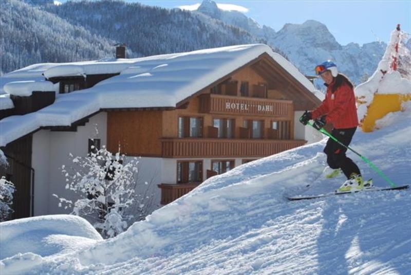 Hotel je umístěn blízko centra města Madonna di Campiglio,před lanovkou Pradalago.Hotel Dahu nabízí přístup na lyžích až ke dveřím (umožňuje hostům lyžovat až ke dveřím). |
