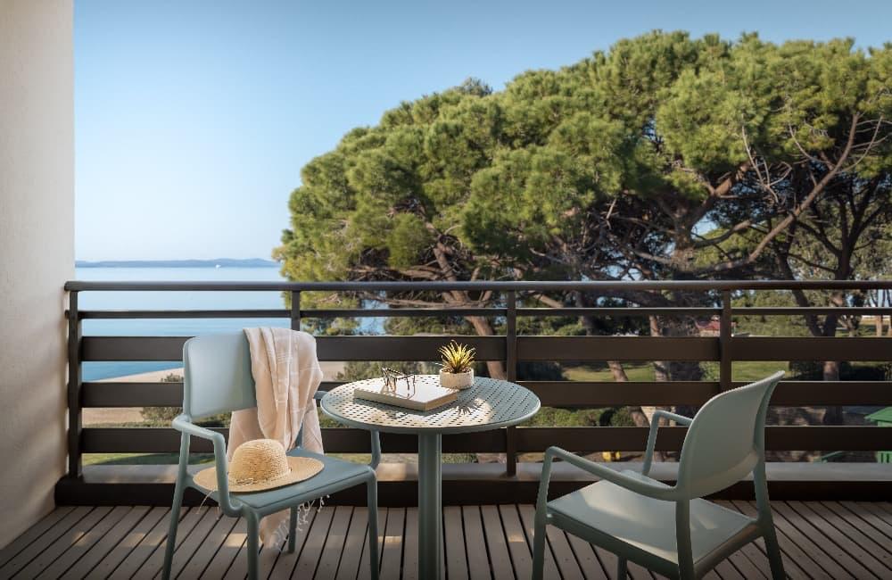 | Výhled na moře, Balkón směrem do parku/zeleně, Balkón, WC, telefon, koupelna, SAT TV, moderně zařízené, klimatizace, fén, sejf, francouzská postel, sprcha |