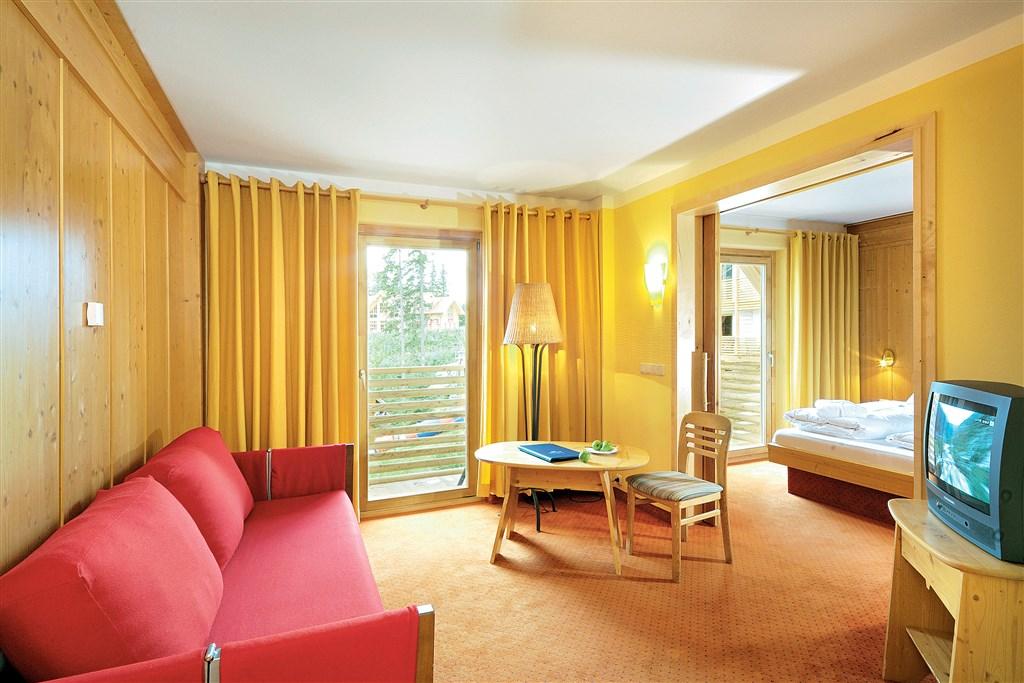| rozsáhlý 4 hvězdičkový klubový resort s 185 pokoji, přijímací halou s recepcí, krbem a infokoutkem (WiFi v lobby a pokojích zdarma), moderní restaurací s otevřenou kuchyní, tematickými jizbami, barem, 6 výtahy, klubovým divadlem, terasou. Lyžařská škola a půjčovna lyží přímo v hotelu (za poplatek, nutná rezervace). Možnost žehlení a sušení oblečení, pračka (za poplatek). Lyžařské depo/pokoj. |