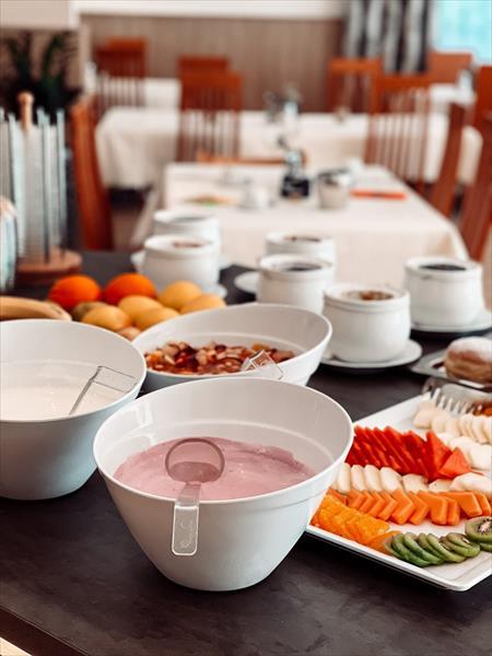 | polopenze - snídaně bohatý bufet, večeře menu o 4 chodech s možností výběru ze 3 hlavních jídel (jedno je vegetariánské), salátový bufet. |