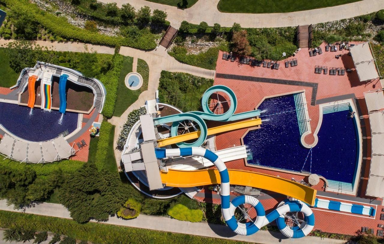 bazén, aquapark s tobogány a skluzavkami pro dospělé i děti (celkem