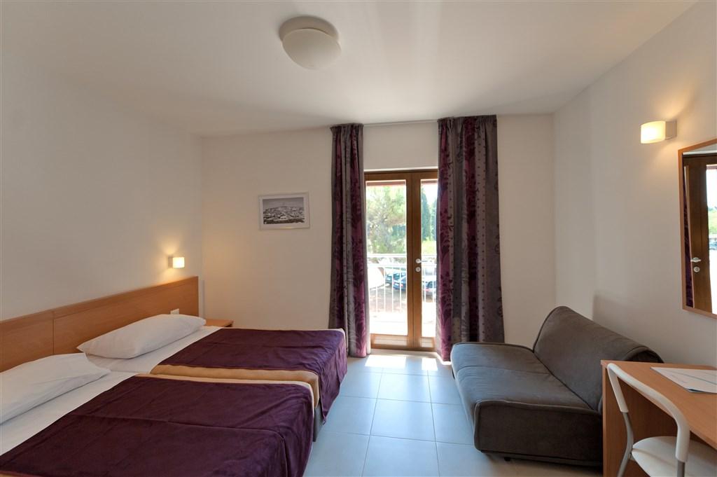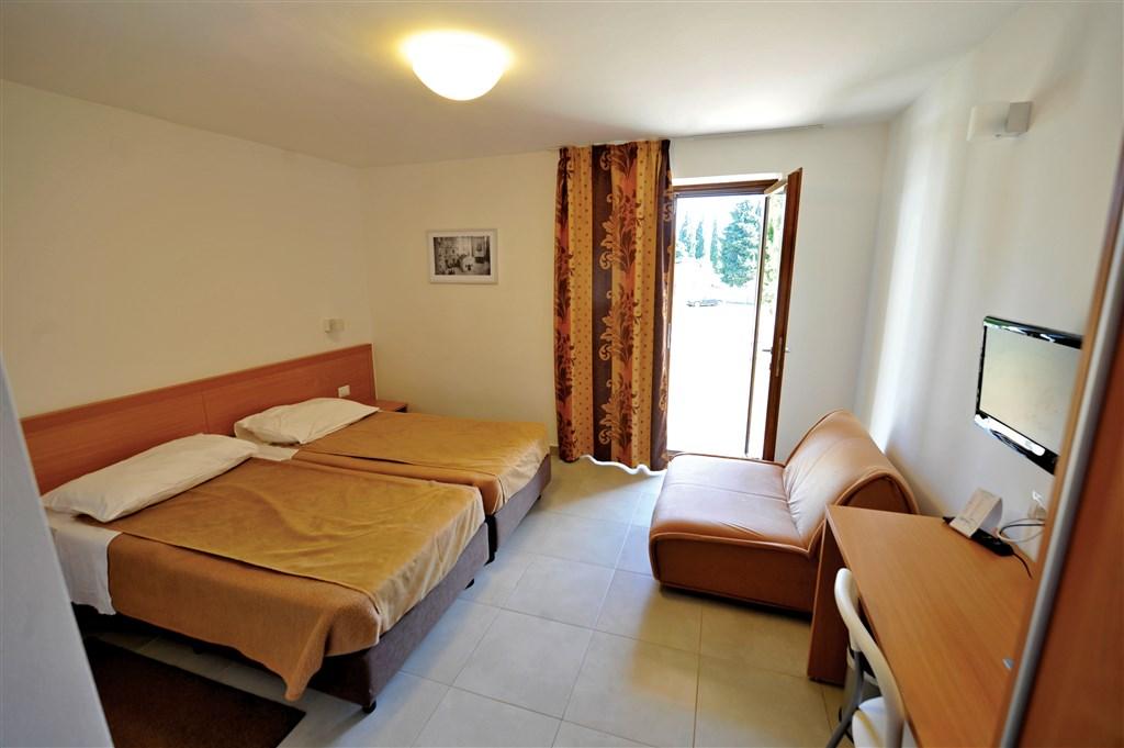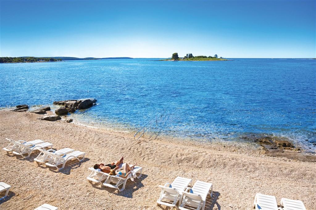 ve stylu istrijské vesničky • pavilony a apartmánové domky • kamenito-oblázková pláž 50-300 m • upravené plochy na slunění • zrekonstruované společné prostory • lehátka a slunečníky za poplatek |