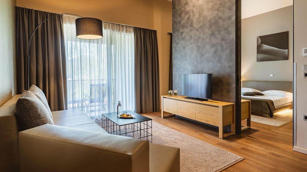 | ložnice a obývací pokoj s rozkládacím gaučem#WC#Fén#Klimatizace#Sprcha / Vana#Minibar#Balkon#Trezor#Koupelna#LCD TV#Stůl#WIFI#Rozkládací gauč |